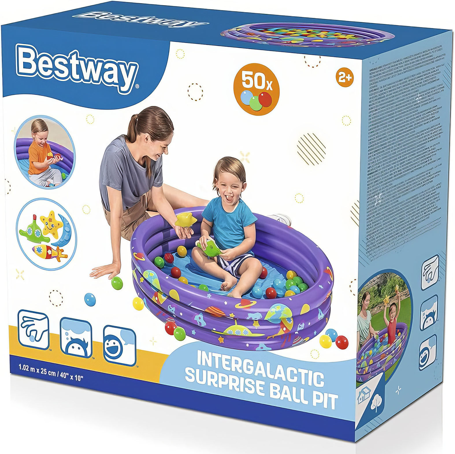 PISCINA INFLABLE 3 AROS C/PELOTAS 102X25 INTERGALACTIC SURPRISE BESTWAY 52466 Q3