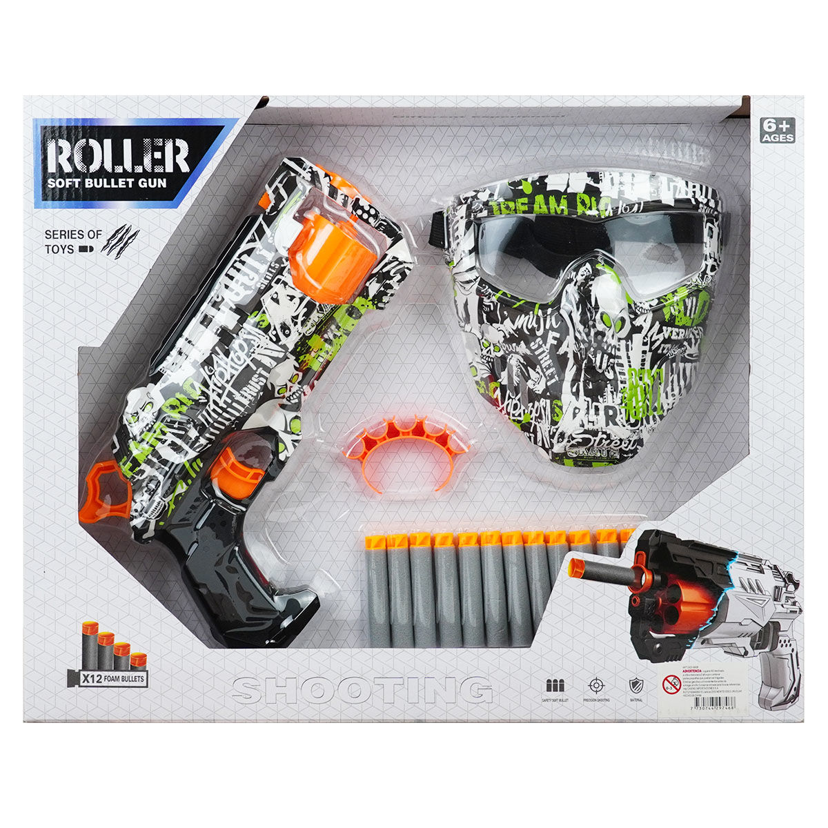 PISTOLA DARDOS 24CM LARGO C/MASCARA 12DARDOS DISEÑO BCO/NEG/VERD 2420-980B Q12M1