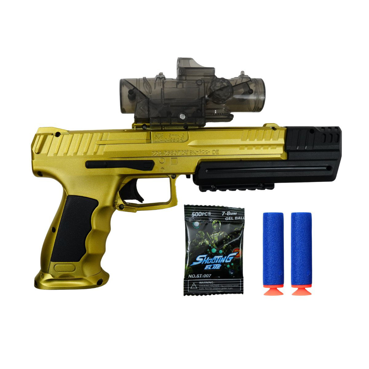 REVOLVER 2EN1 BALINES GEL Y DARDOS DORADO A BATERIA 2890-ST680A Q36M1
