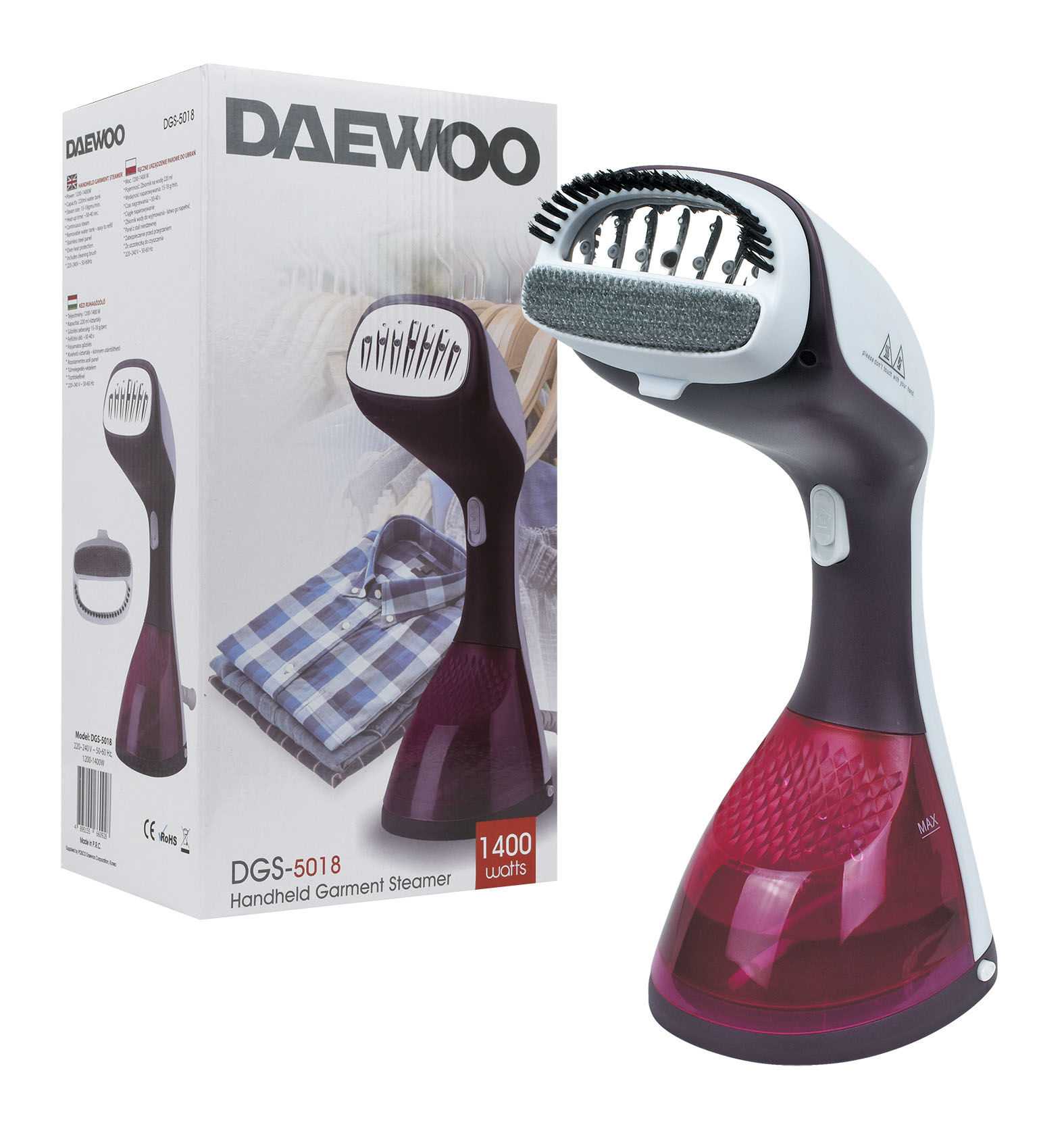 PLANCHA DAEWOO A VAPOR VERTICAL 1200/1400W CAP TANQUE 220ML CEPILLO DGS-5018 Q10
