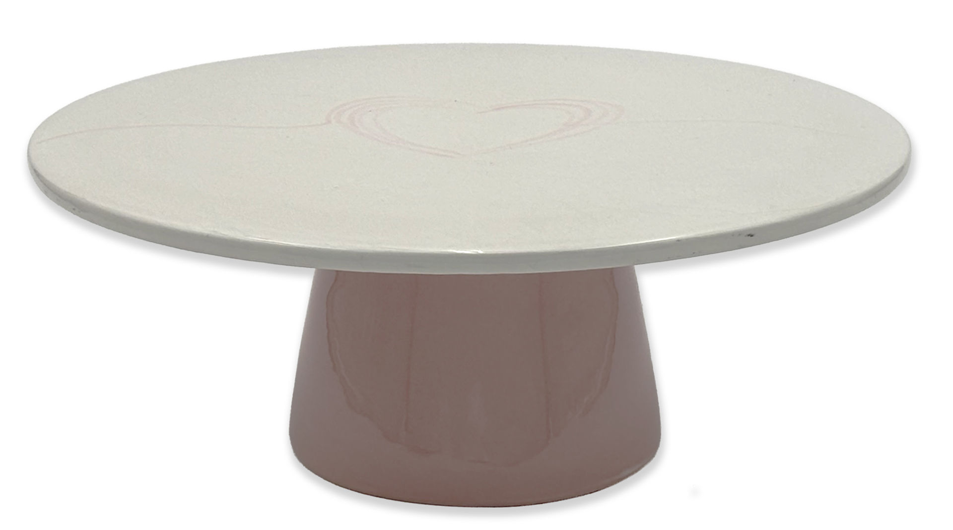 PLATO C/PIE CERAMICA P/TORTA DISEÑO CORAZONES 23X8CM ROSA QW25120 Q6M6