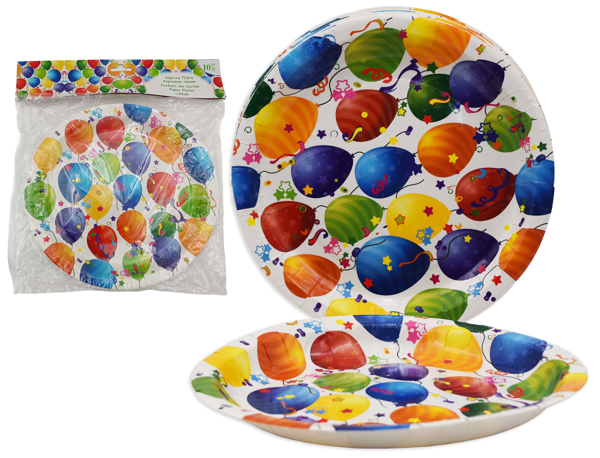 PLATO DESCARTABLE X10PCS 22CM PAPEL C/DISEÑO GLOBOS 118GR 35418 Q100