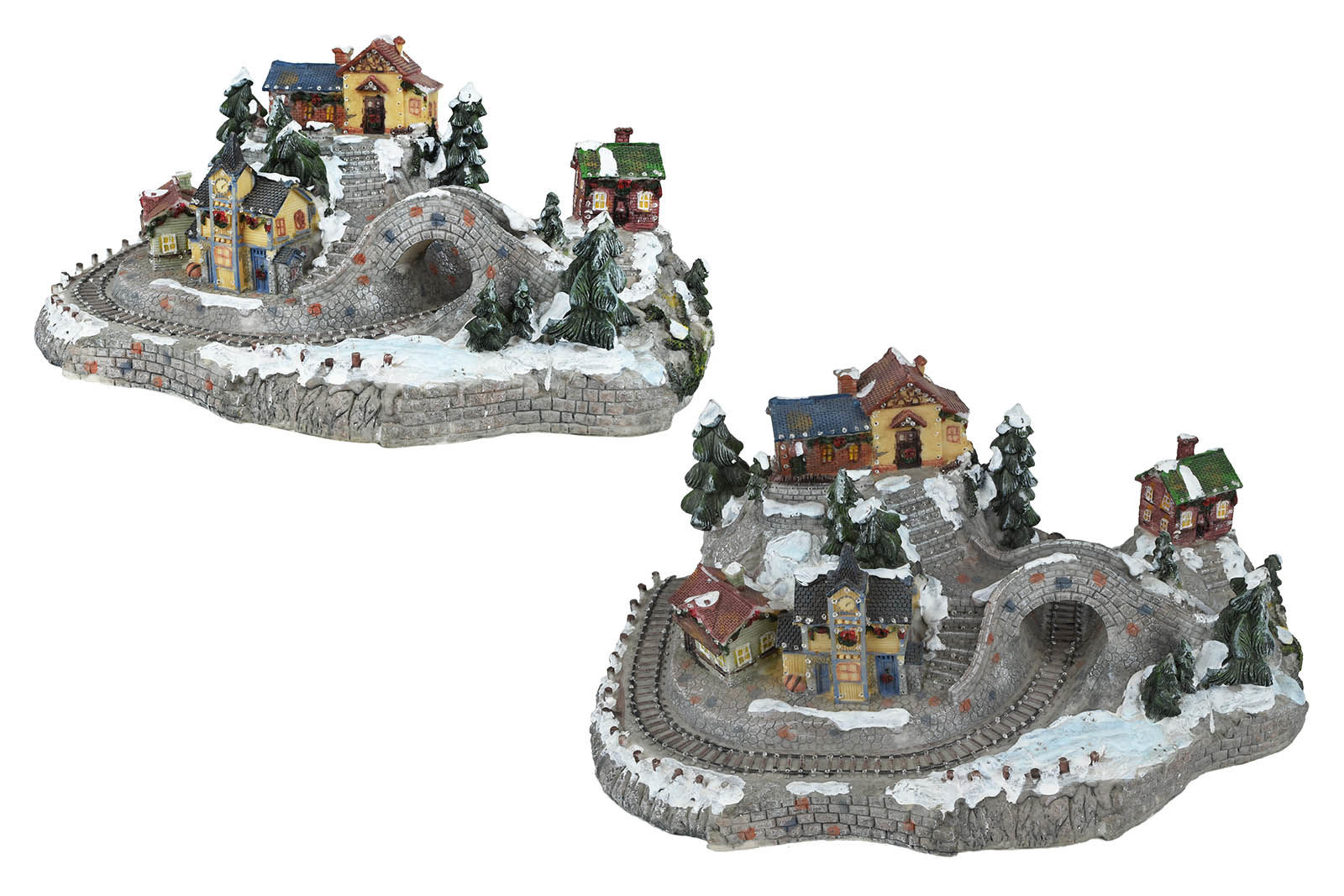 PUEBLO C/VIA DE TREN Y LUCES 34CM LARGO POLIRESINA (FX7822 -FX004 - 26057) Q2