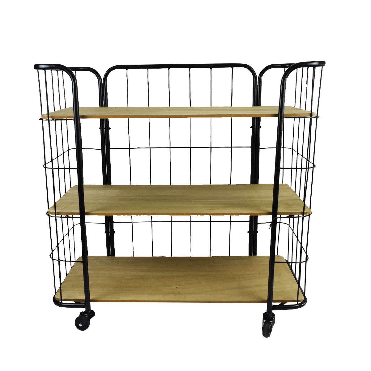 RACK MADERA Y METAL TIPO CARRO C/RUEDAS 3 ESTANTES 86X42X82.5CM 30907 Q1