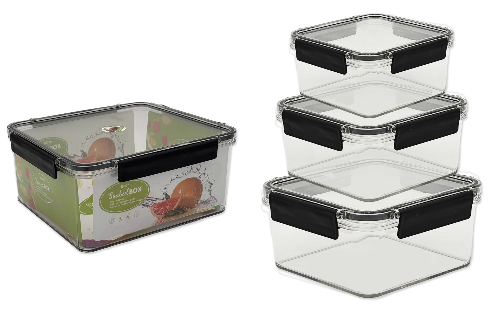 RECIPIENTE ACRILICO SET X3PCS TAPA HERMETICA CUADRADO 1LT 2LT 3.5LT 32392 Q24