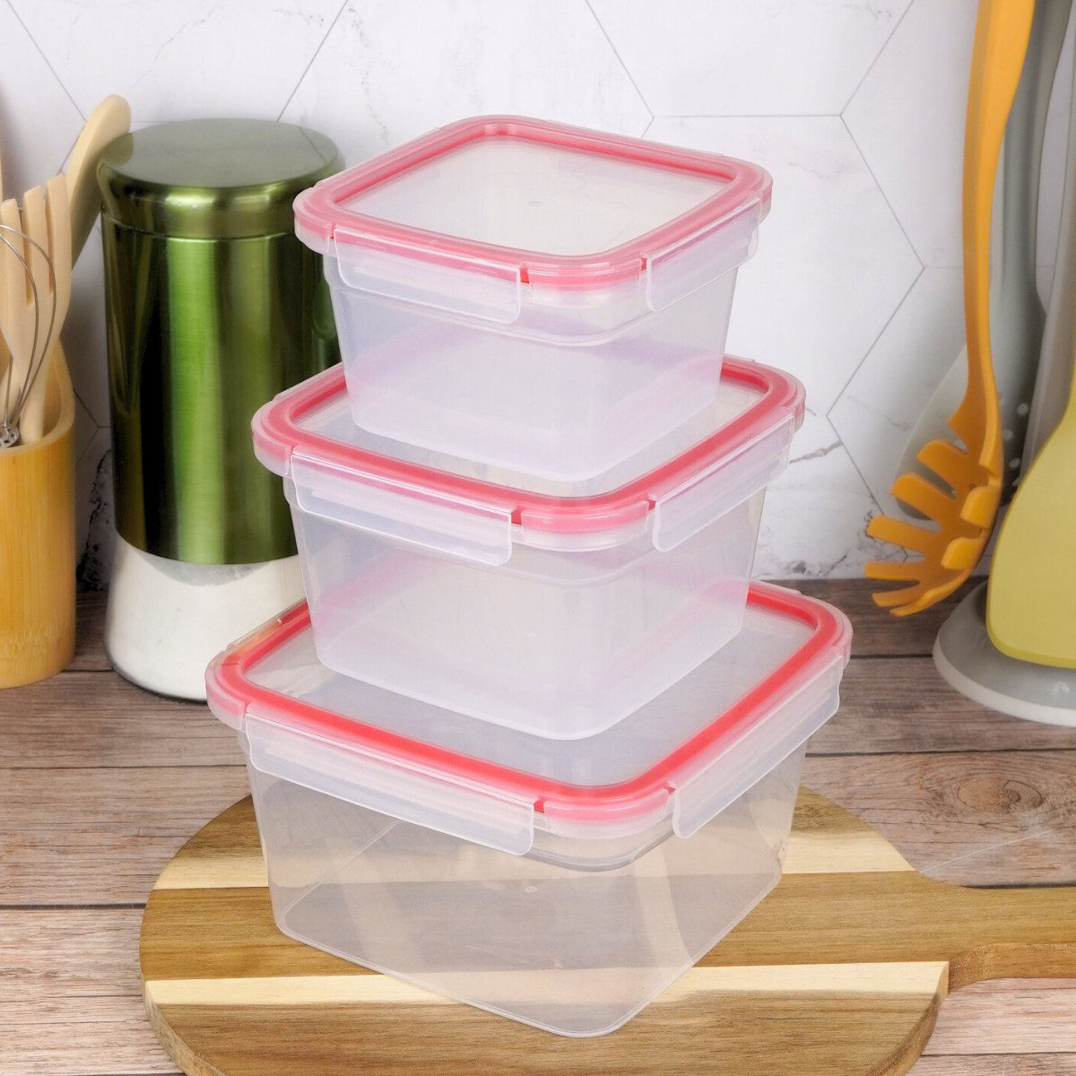 RECIPIENTE HERMETICO SET X3PCS CUADR 650ML/1.5LT/2LT RECT 0.5L/1LT/1.9L 34163 Q8
