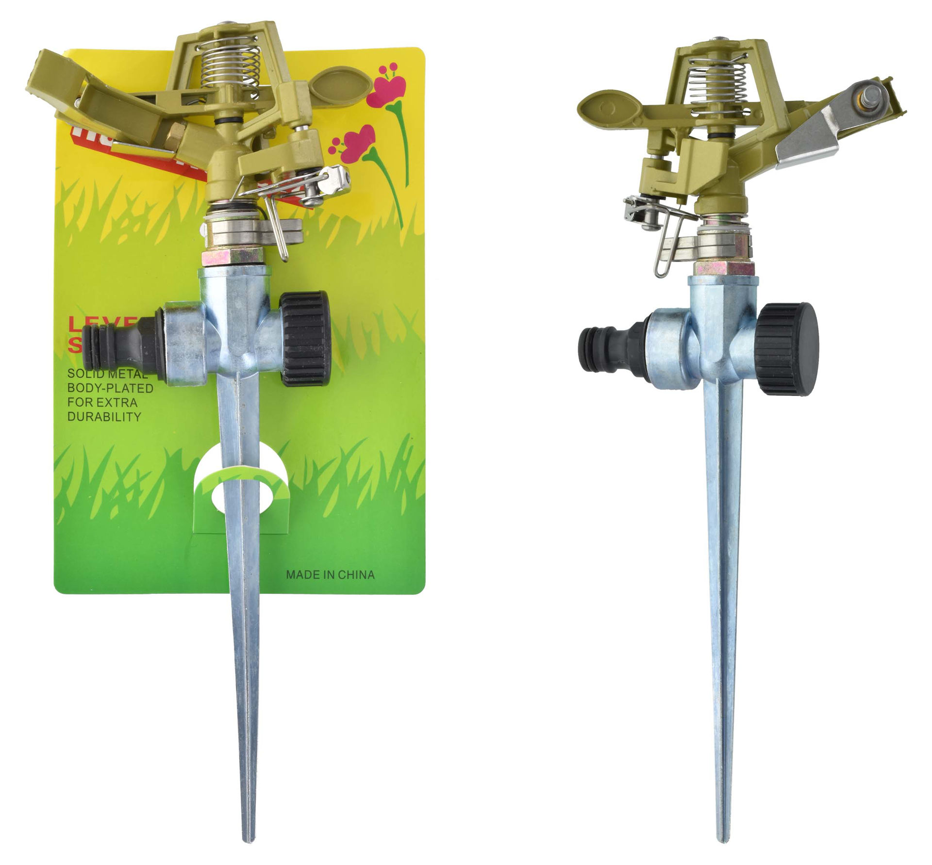 REGADOR P/JARDIN C/ESTACA Y CONEXION P/MANGUERA METAL 28.5CM BLISTER 05854 Q36