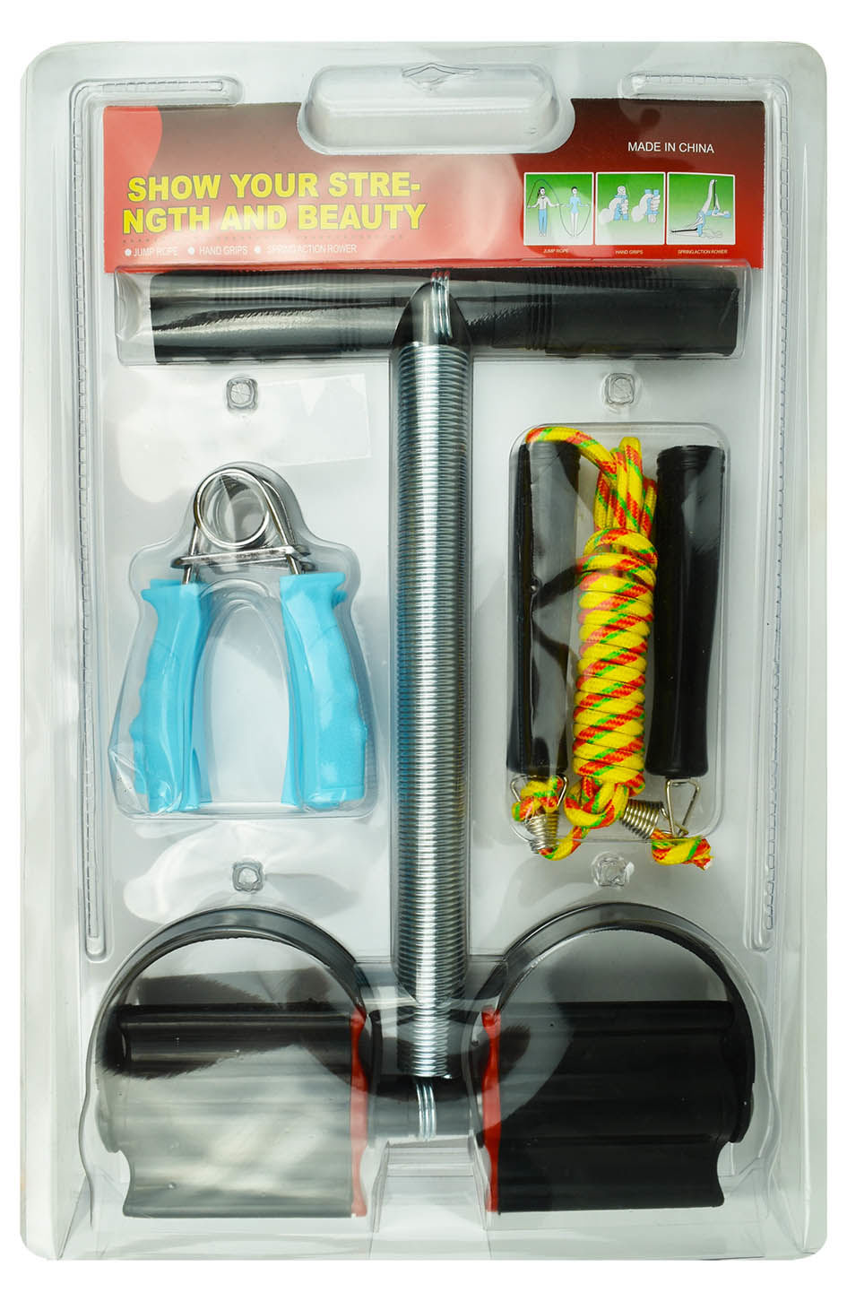 SET ESTIRAMIENTO P/GIMNASIA 3PCS MANCURENA CUERDA SALTAR 43X29.5CM 26055 Q20