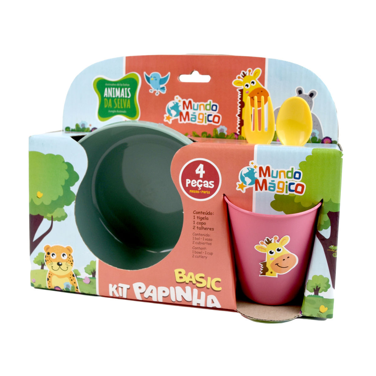 SET XPLAST INFANTIL 4PCS PLASTICO INFANTIL ANIMAL SELVA BOWL+CUBIER+VASO 9392 Q6
