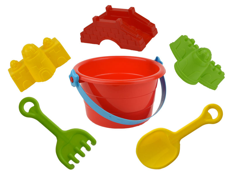 SET PLAYA 6PCS BALDE 3 MOLDES PALA Y RASTRILLO BOLSA RED 1801-610B Q48 M24