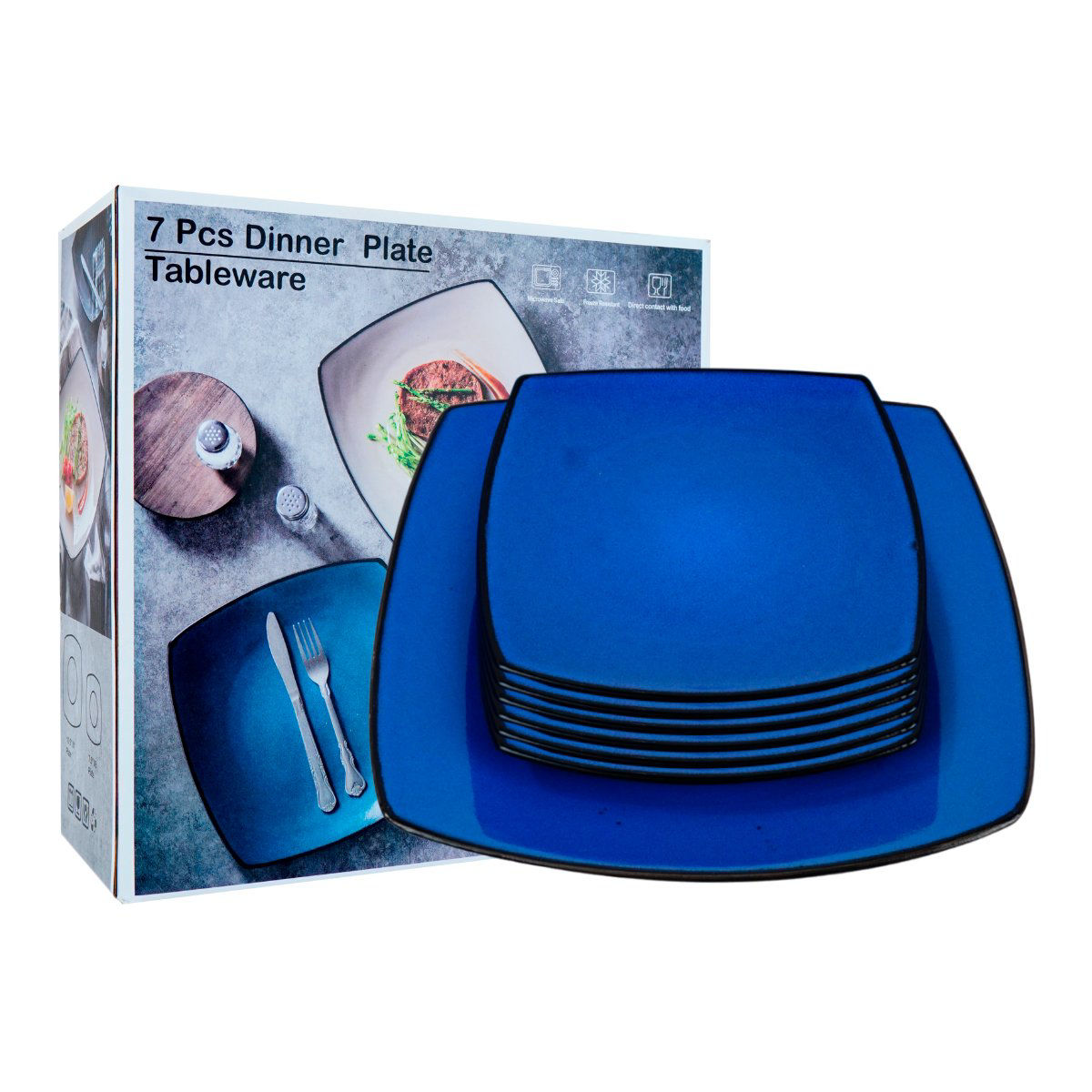 JUEGO VAJILLA 7PCS CERAMICA CUADRADO COLOR PLATO 26CM + 6 PLATO 19CM FX3050 Q6