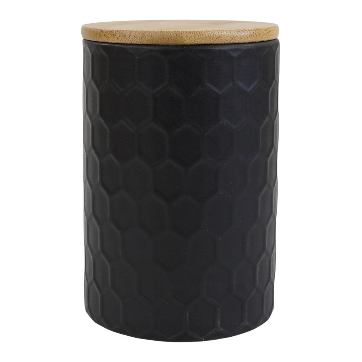 TARRO CERAMICA NEGRO TAPA MADERA LABRADO PANEL ABEJA 436-512GR 10X15CM 35631 Q24