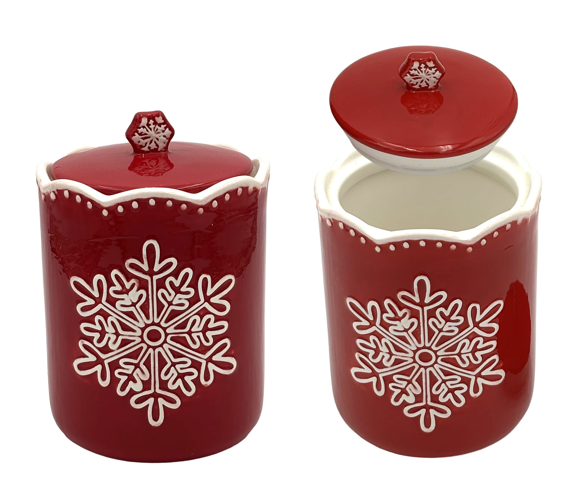 TARRO C/TAPA CERAMICA COLOR LABRADO NAVIDEÑO 13X16.5CM PQ25-5 Q8M2