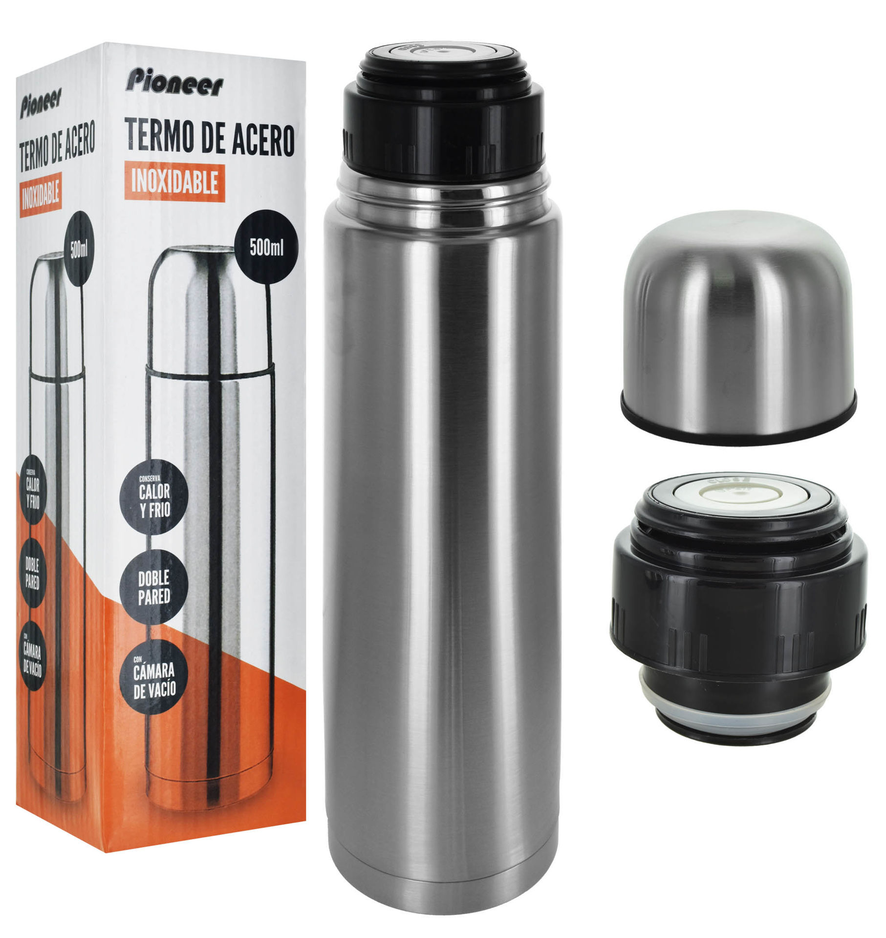 TERMO ACERO BALA 500ML DOBLE PARED PIONEER EN CAJA COLOR SL-50Z Q24