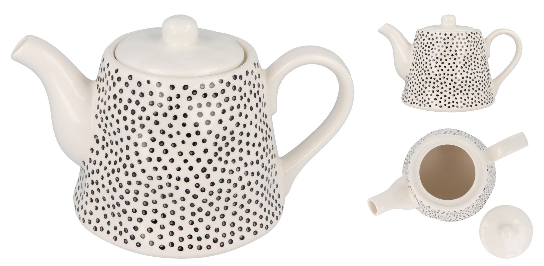 TETERA CERAMICA BLANCA C/PUNTITOS NEGRO 1000ML 24.5X15.5X15CM 28233 Q24
