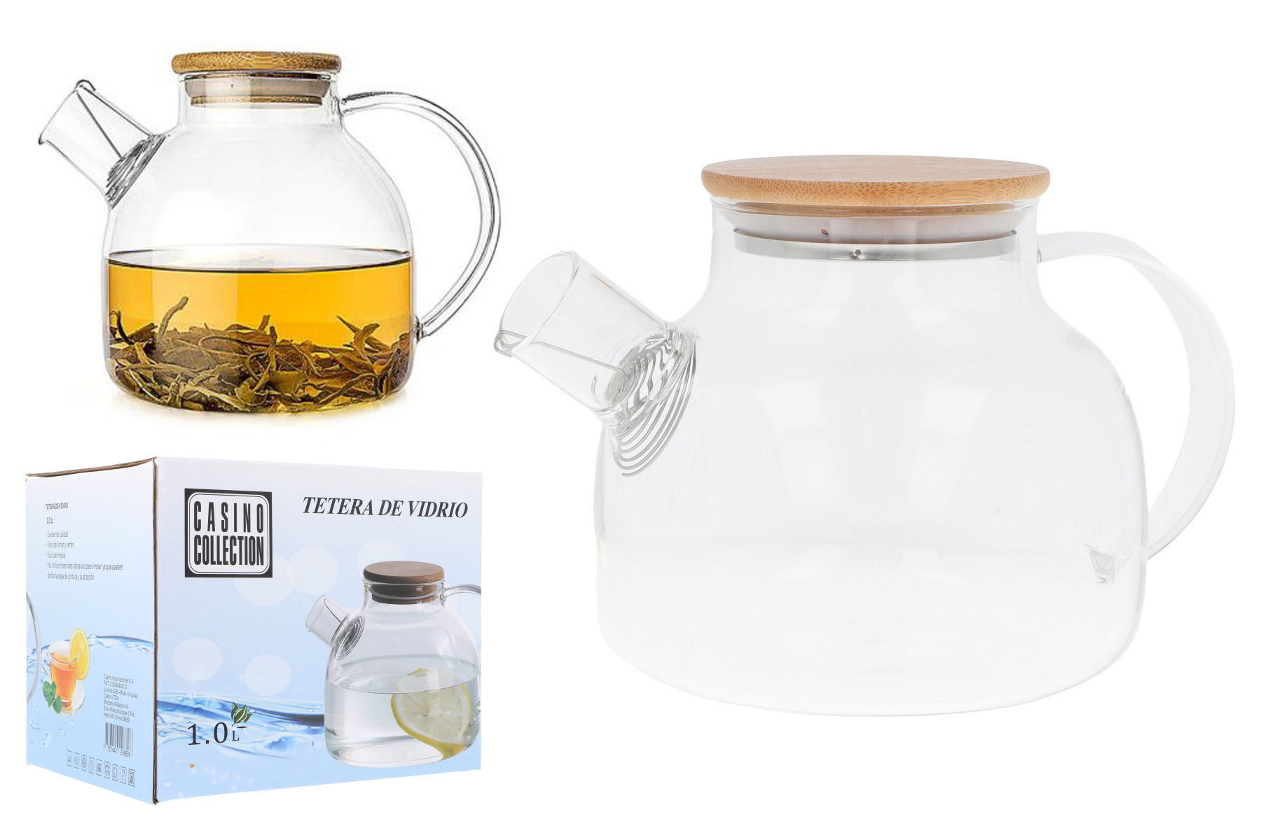 Tetera de Vidrio con tapa de Madera 1 litro