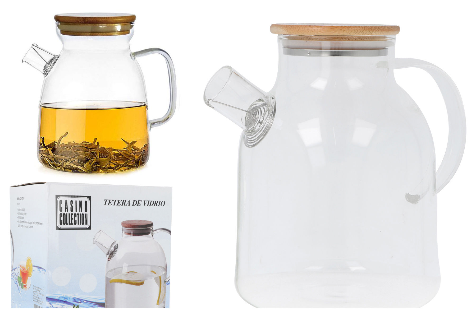 Tetera de vidrio con tapa de madera