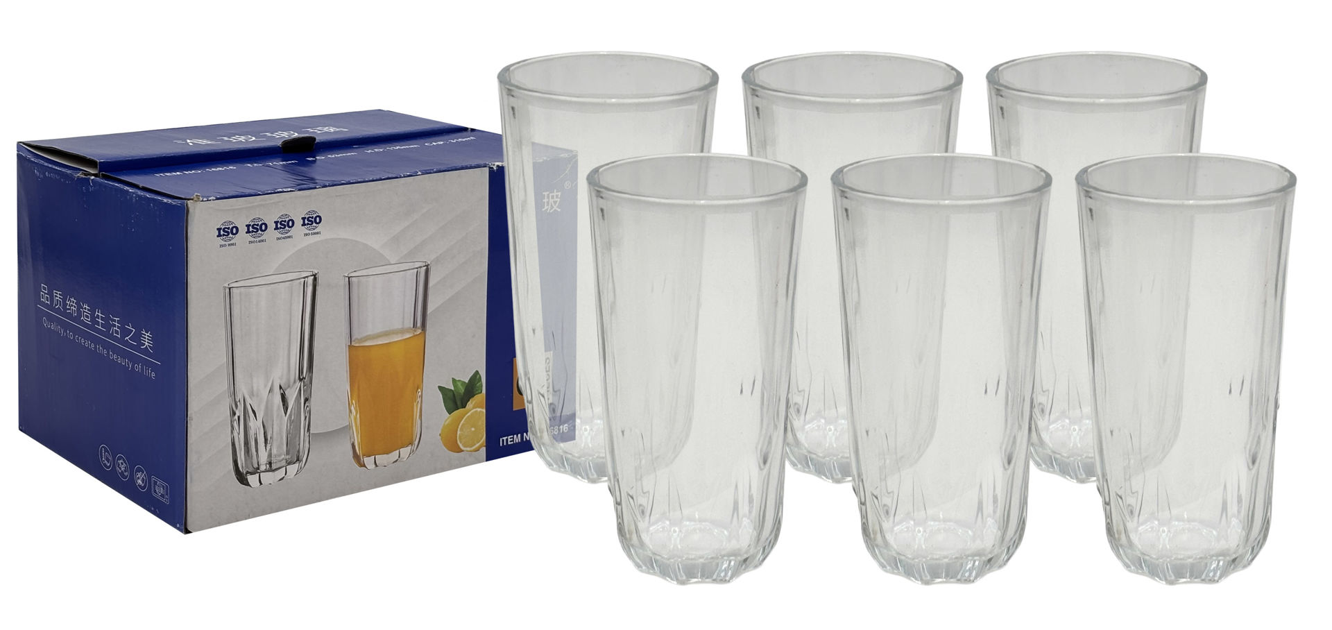 VASO VIDRIO X6PCS 5.3X135CM 310ML BASE LABRADO SOL 35156 Q12