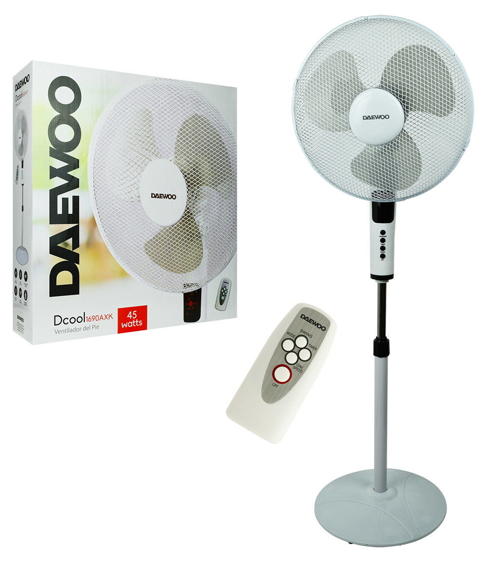 VENTILADOR DAEWOO 45W C/PIE CONTROL REMOTO OSCILANTE 3 VEL 40CM DCOOL1690AXK Q1